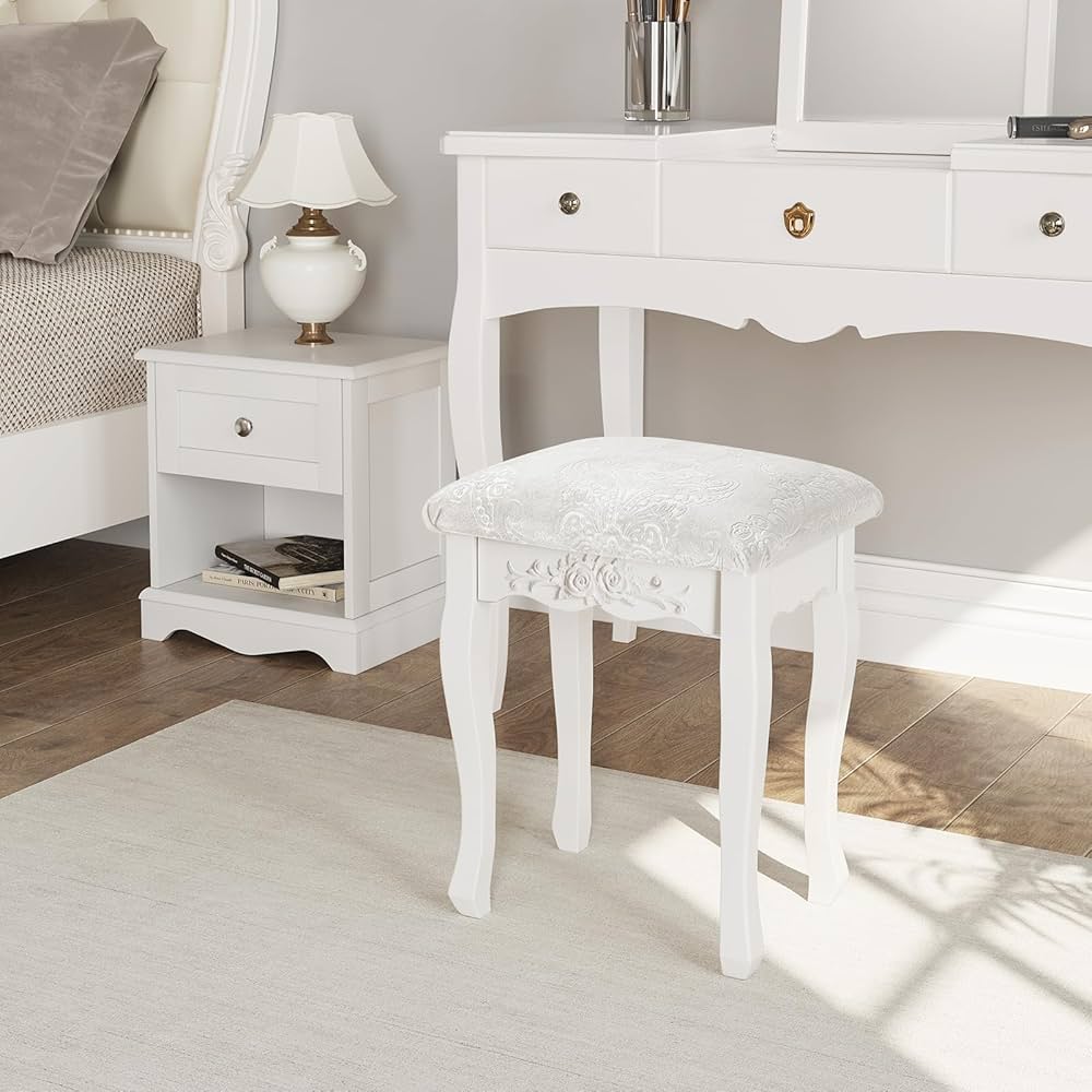 - ENKEL MONTERING: Sminkstolen levereras med tydliga monteringsanvisningar så att du enkelt och snabbt kan slutföra monteringen av den lilla pallen. Totalmått: 37 x 50 x 30 cm (B x H x D)