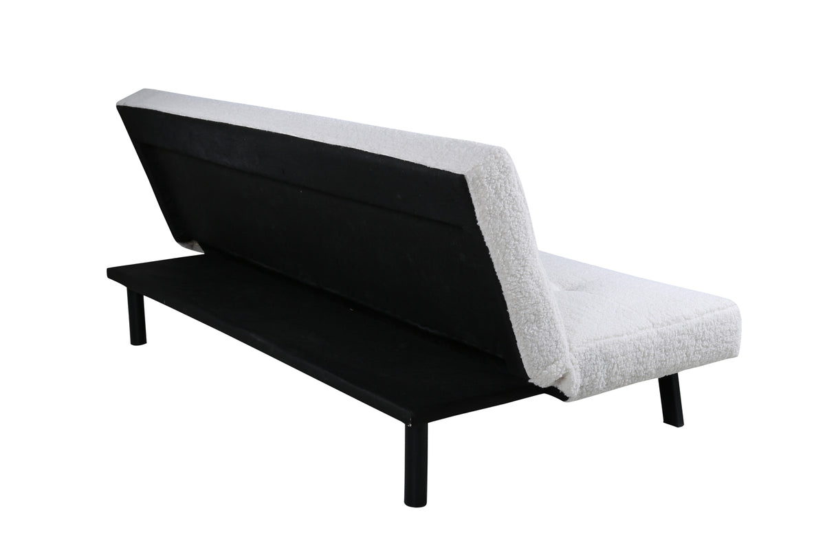 Skapa en perfekt vilohörna med vår bäddsoffa från serien Bodil - designad helt efter de senaste trenderna! Enkelt och smidigt förvandlar du din 2-3sitssoffa till en bekväm schäslong eller skön dubbelsäng - perfekt för mysiga filmkvällar eller övernattande gäster! Den genomtänkta designen med raka nordiska former, enkla utformning och dekorativt djuphäftat mönster skapar en stilren helhet i vardagsrummet. Tillverkad i mjuk teddyklädsel i vit kulör som gör ett inbjudande intryck till rummet. Ett smart tillskott i hemmet helt enkelt! Tips för Polyestertyg: Ta bort fläckar med en gång, gnid inte utan försökt suga upp varsamt med en trasa. Skulle fläckarna inte gå bort, prova ett fläckborttagningsmedel som du först provat på en mindre synlig del av tyget.