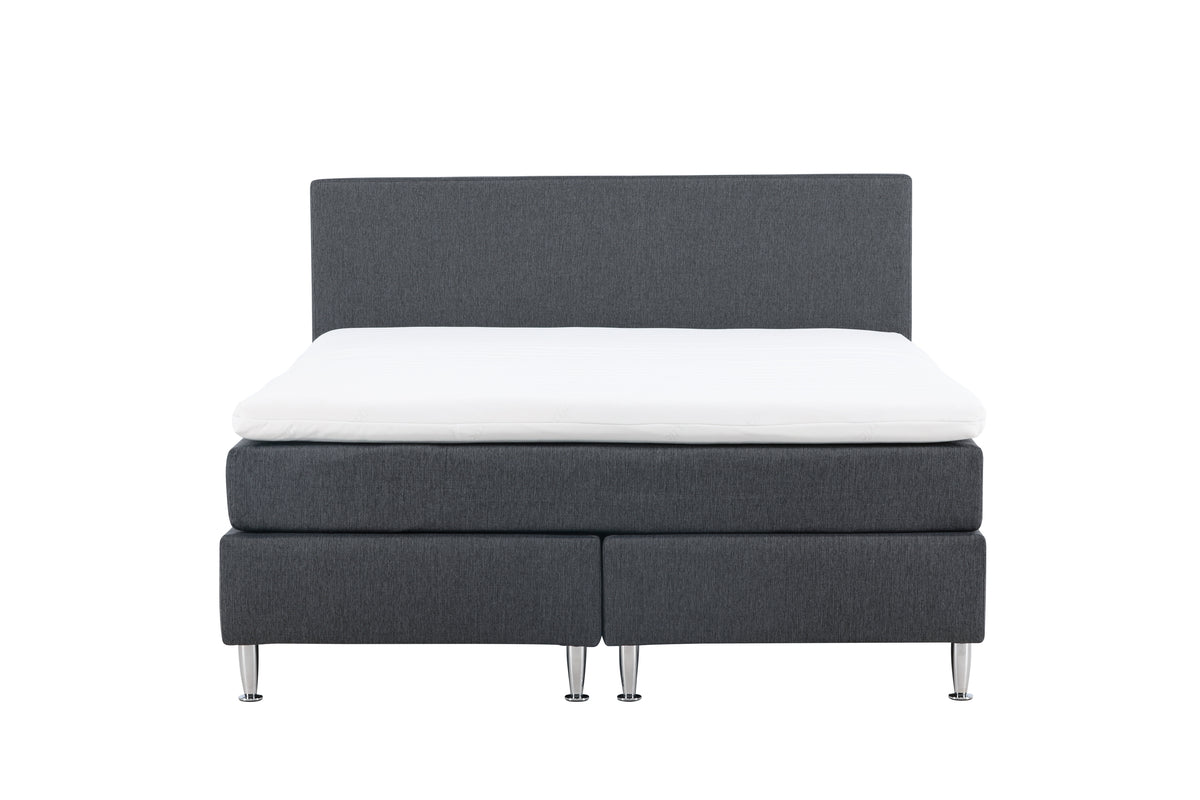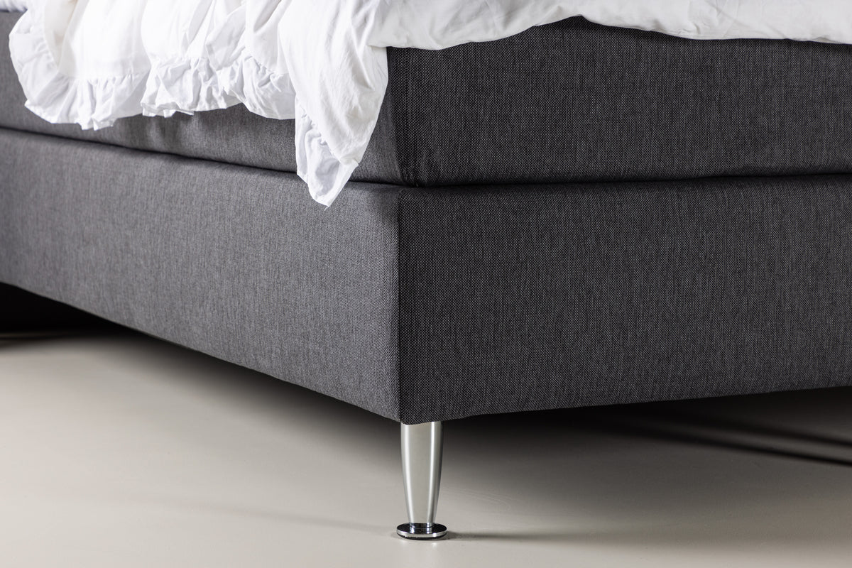 Skapa en ombonad och elegant atmosfär i ditt sovrum med den exklusiva Toledo kontinentalsängen i en förtrollande mörkgrå nyans. Toledo sätter standarden för stil och komfort med sina generösa mått på 180x200 cm, vilket ger dig och din partner gott om utrymme att sträcka ut er och njuta av en natt full av drömmar. Toledo är mer än bara en säng; det är en livsstil. Den sofistikerade mörkgrå färgen och den moderna designen ger ditt sovrum en känsla av tidlös elegans. Den kontinentala konstruktionen med en solid träram och två separata madrasser garanterar en oslagbar kombination av stöd och komfort för en natt av ostörd vila. Oavsett om du föredrar en något mjukare eller fastare säng anpassar sig den efter din kropp, vilket minimerar tryckpunkter och främjar en djup och fridfull sömn. Med Toledo kontinentalsäng kan du varva ner efter en lång dag och känna hur varje oro smälter bort när du sjunker ner i dess omfamnande komfort. Satsa på kvalitet och stil med Toledo, sängen som höjer din sömnupplevelse till en ny nivå. Skapa ett drömskt sovrum med Toledo kontinentalsäng i mörkgrått och omringa dig själv med den ultimata komforten och elegansen. Njut av varje stund av ditt sovrum med Toledo.